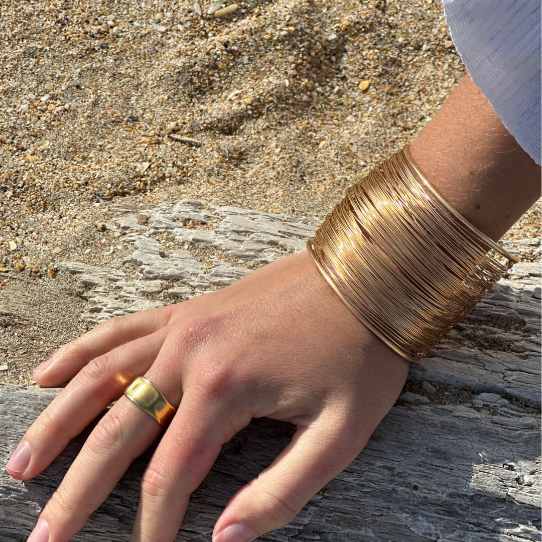 Des bijoux dorés, comme une lumière calme sur les vagues.