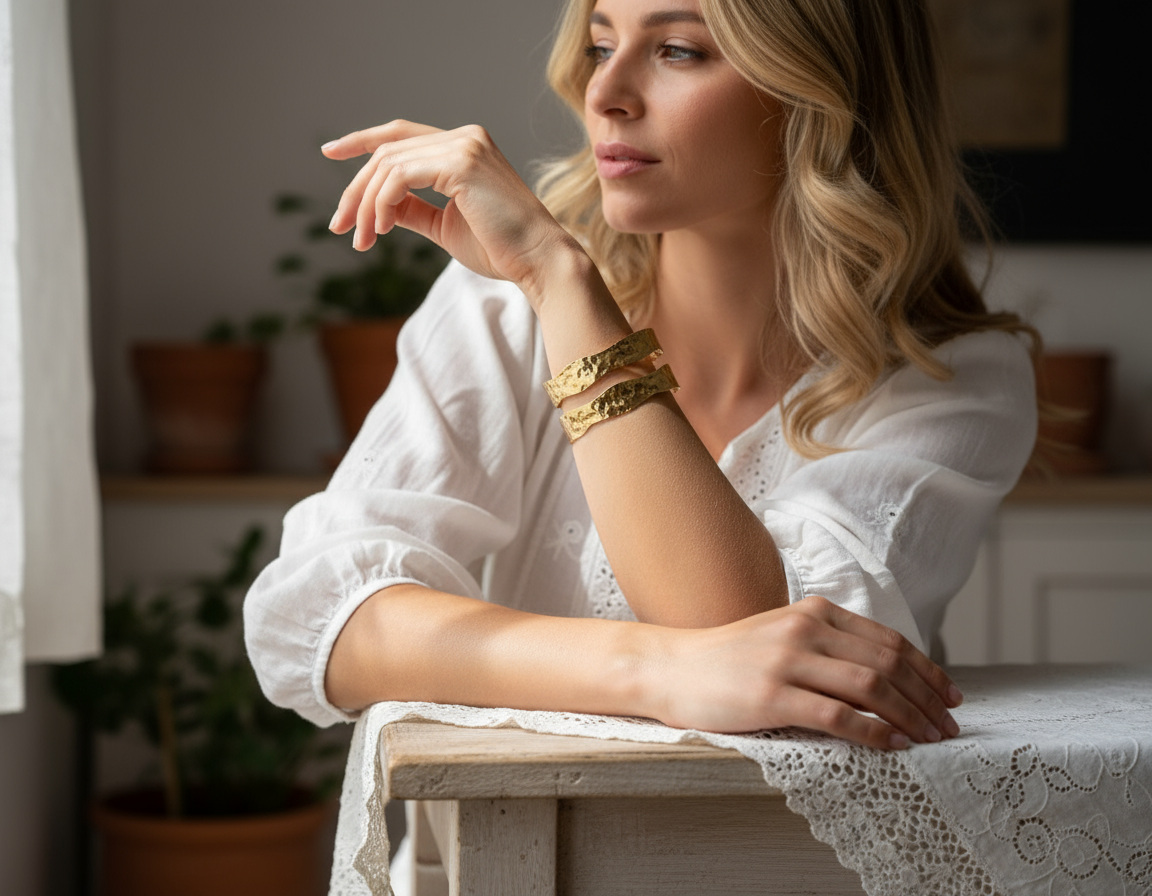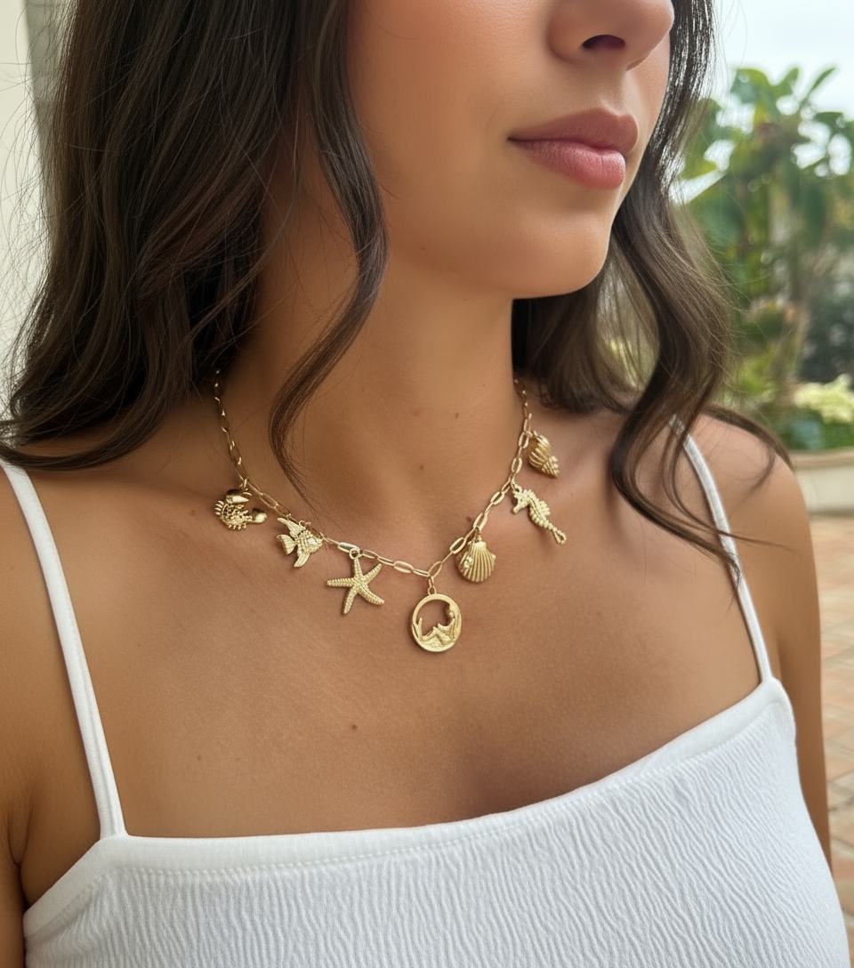 Des bijoux dorés, comme une lumière calme sur les vagues.